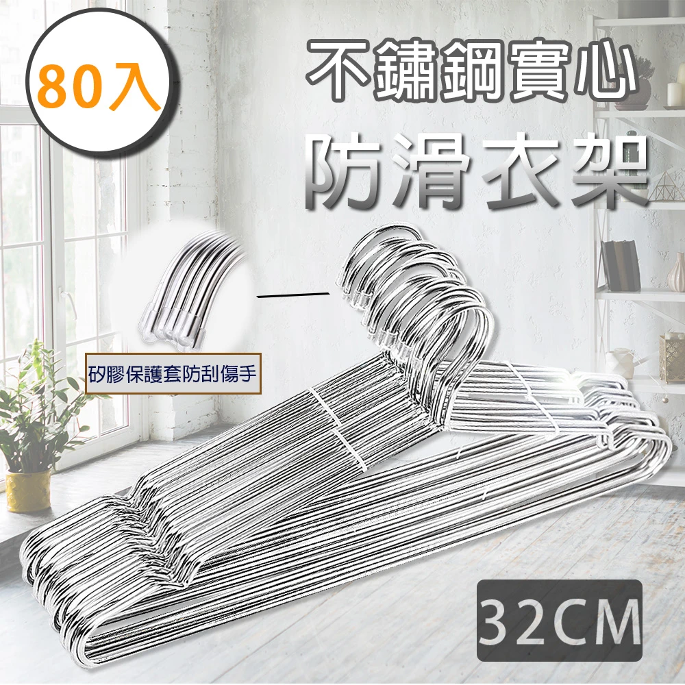 樂邦 32CM不鏽鋼兒童衣架/80入(實心衣架 不鏽鋼衣架 防滑衣架 曬衣架 晾衣架)