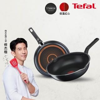 Tefal 特福 MOMO獨家 璀璨系列28CM不沾鍋雙鍋組(平底鍋+炒鍋)