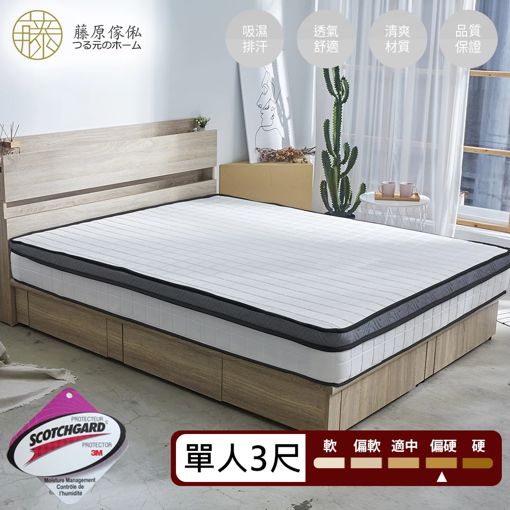 藤原傢俬 3M吸濕排汗硬式獨立筒床墊(單人3尺3C)