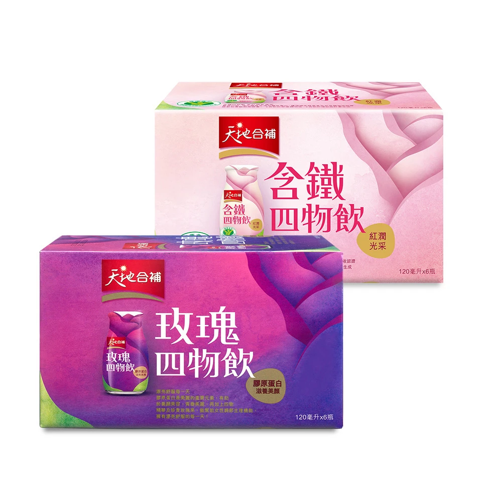 天地合補 含鐵四物飲120ml×6入+膠原蛋白玫瑰四物飲120ml×6入(共12入)
