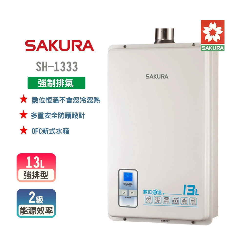SAKURA 櫻花 數位恆溫強制排氣熱水器 13L(SH-1333 NG1/LPG 原廠保固原廠安裝服務)