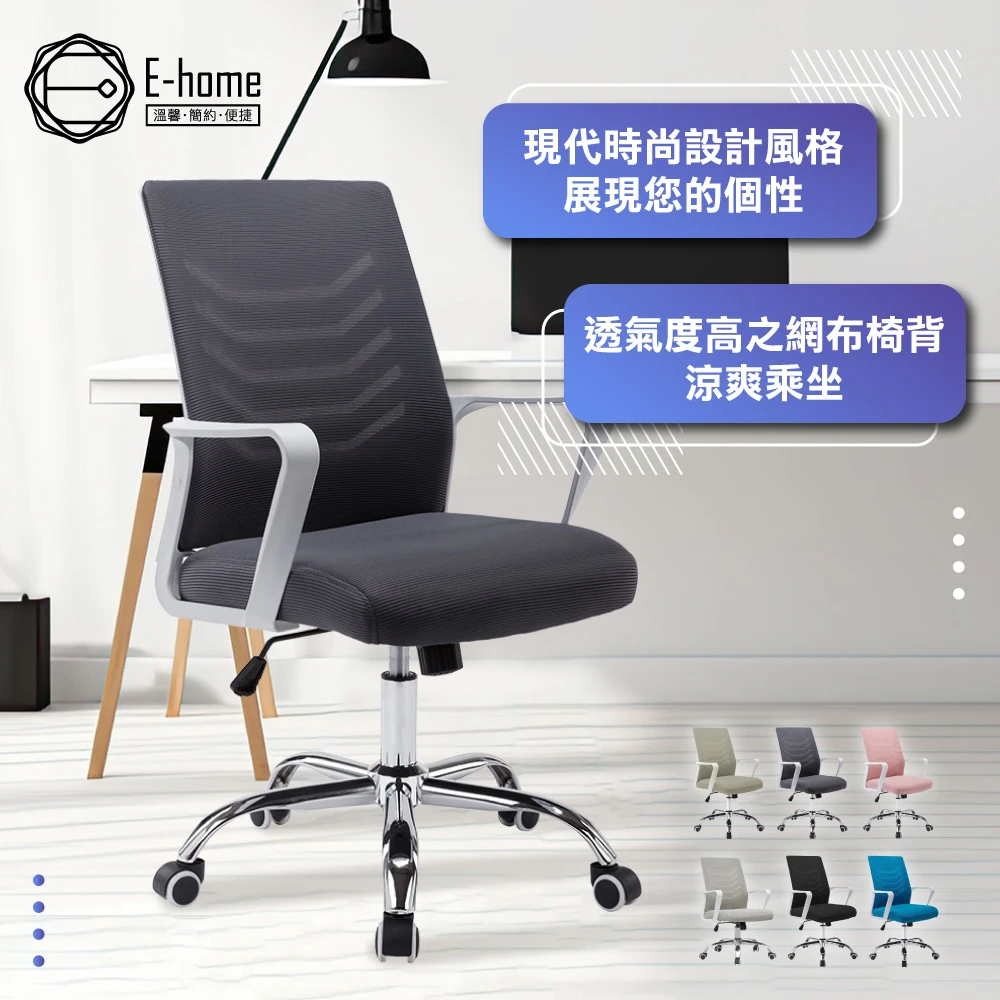 E-home Baez貝茲扶手半網可調式白框電腦椅 6色可選(辦公椅 網美椅 會議椅 OA)