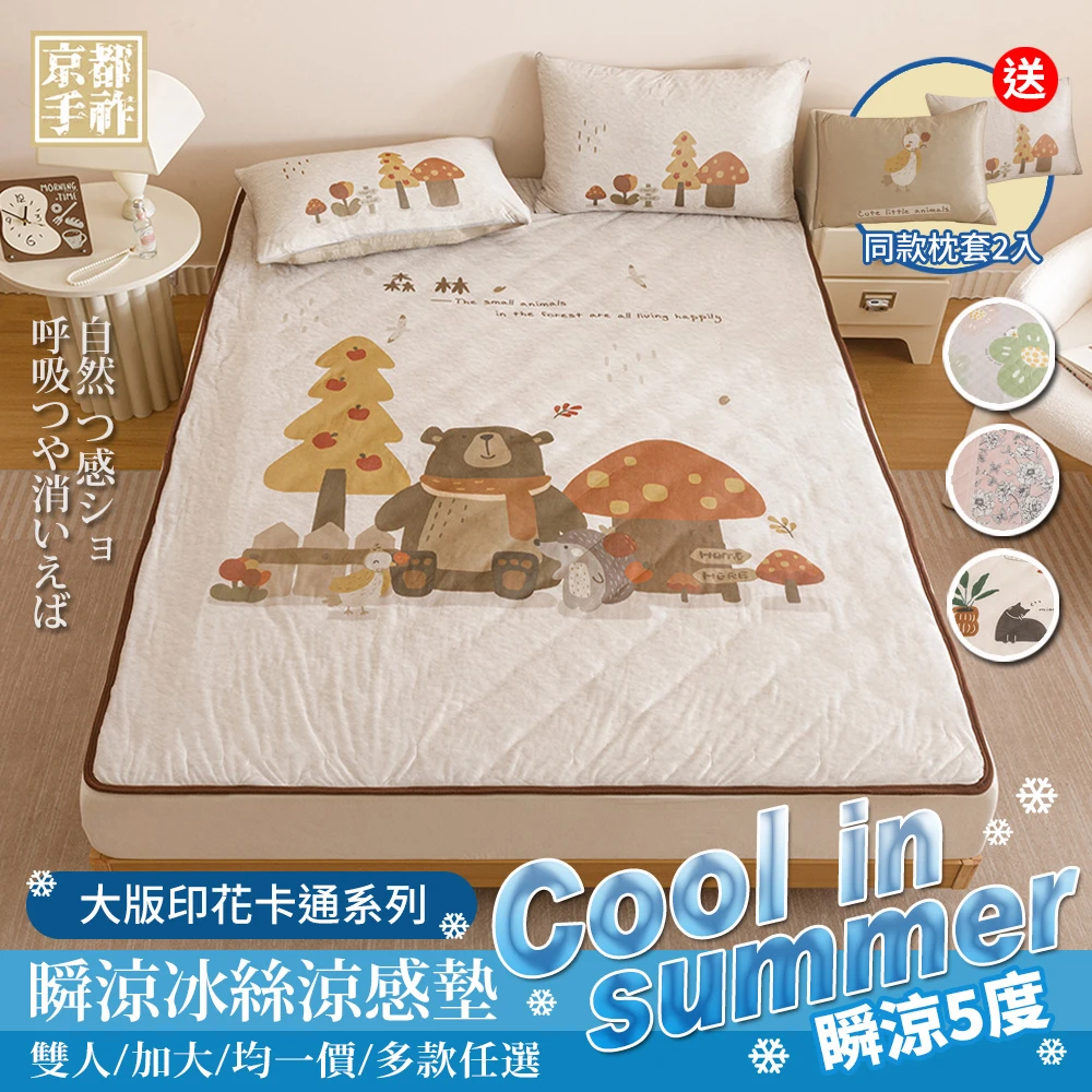 京都手祚 日系瞬涼5度冰絲涼感墊枕套三件組(雙人/加大 均一價/涼感墊/涼墊/冰涼墊)