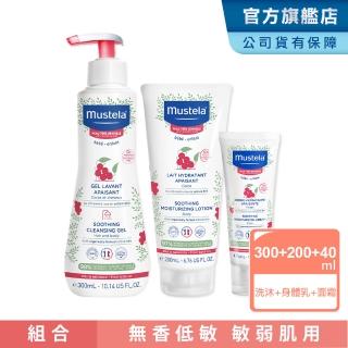 Mustela 慕之恬廊 舒恬良 敏弱膚質全護組(雙潔凝露300ml+潤身乳200ml+面霜40ml 敏弱寶寶沐浴乳液)