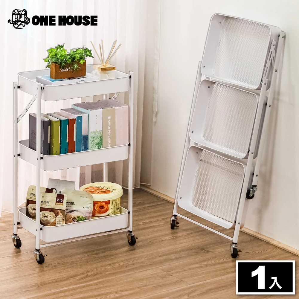 ONE HOUSE 免安裝折疊收納三層收納推車(收納籃車/置物推車/手推車/鐵架/收納/櫃子/電器櫃/層架/簽到)