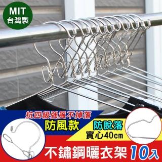 iRoom 優倍適 防風款實心不鏽鋼防脫落曬衣架40cm(10入組)