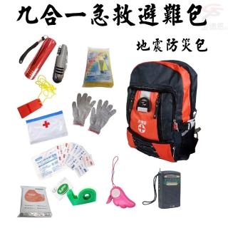 金德恩 9合1急救避難包 戰爭包 地震防災包(背包 保暖毯 瑞士刀 收音機 警報器 手電筒 雨衣 手套 哨子)