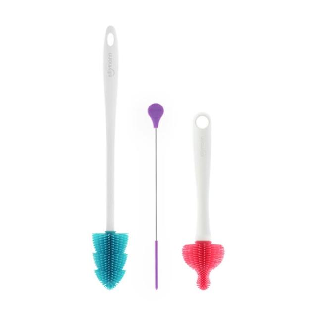 sillymann 100%鉑金矽膠奶瓶刷+奶嘴刷超值組(鉑金矽膠可進沸水、蒸氣紫外線消毒鍋消毒)