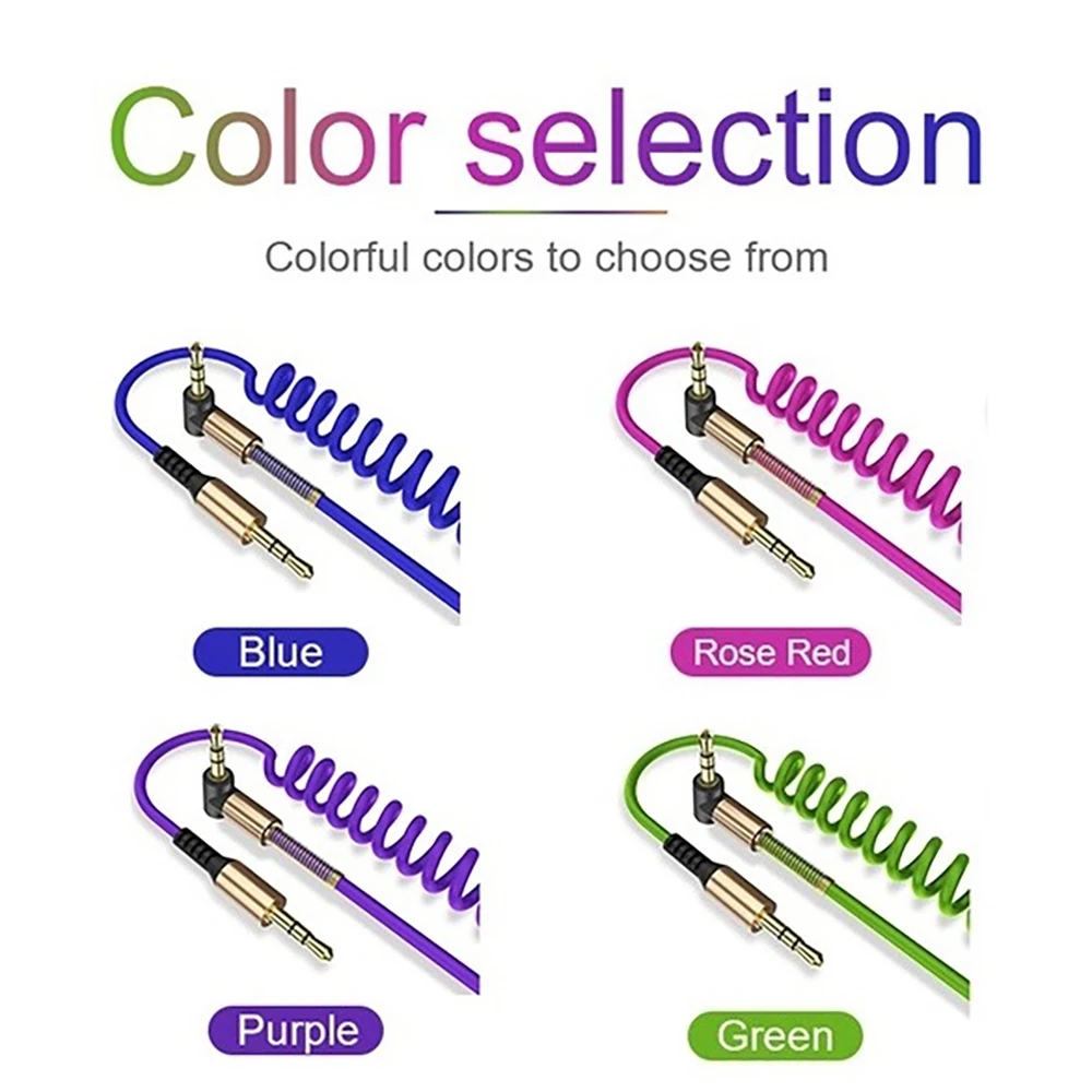 Bill Case L型90度24K鍍金3.5mm彈性伸縮AUX立體聲音源線 綠色(32到128公分 伸縮自如 整齊不亂)