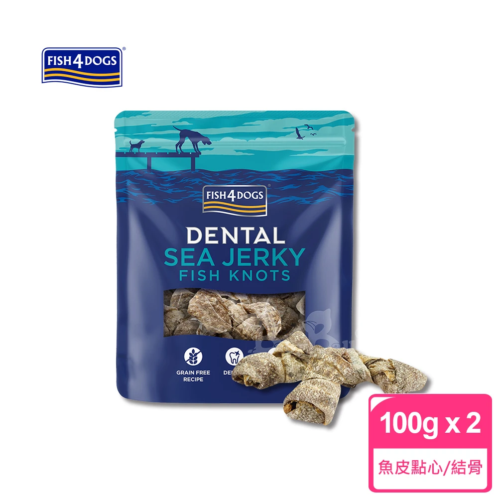 FISH4DOGS 海洋之星 潔牙魚皮點心-結骨 100G*2入(寵物零食 狗零食 清潔牙齒)