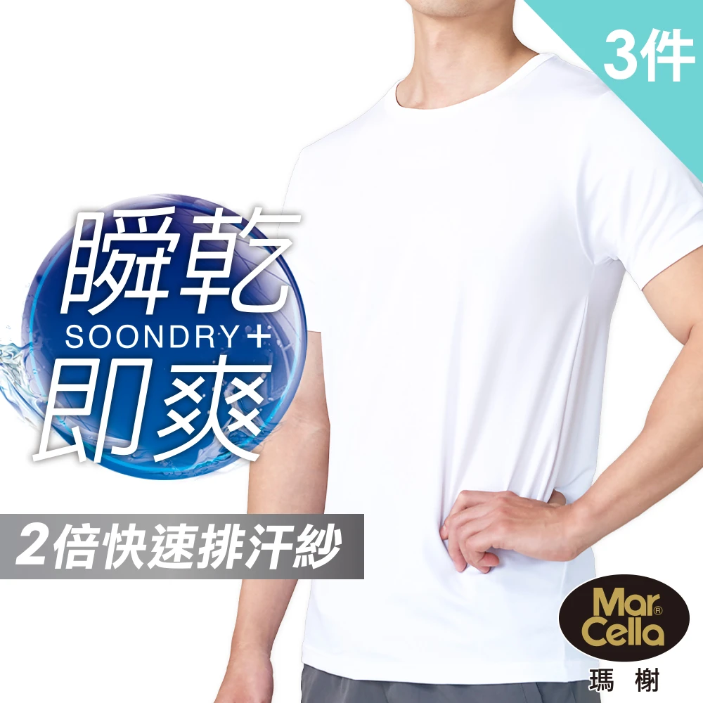 MarCella 瑪榭 3件組-SoonDry透氣吸排圓領短袖背心/內衣(男內著/男內衣/吸濕/排汗/涼感/速乾/背心)