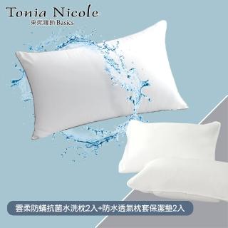Tonia Nicole 東妮寢飾 雲柔防蹣抗菌水洗枕2入+枕頭保潔墊2入(超值四件組)