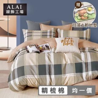 ALAI 寢飾工場 贈珪藻泥軟墊 100%純棉兩用被床包組 多款任選(單/雙/加大 均一價 台灣製 200織精梳純棉)