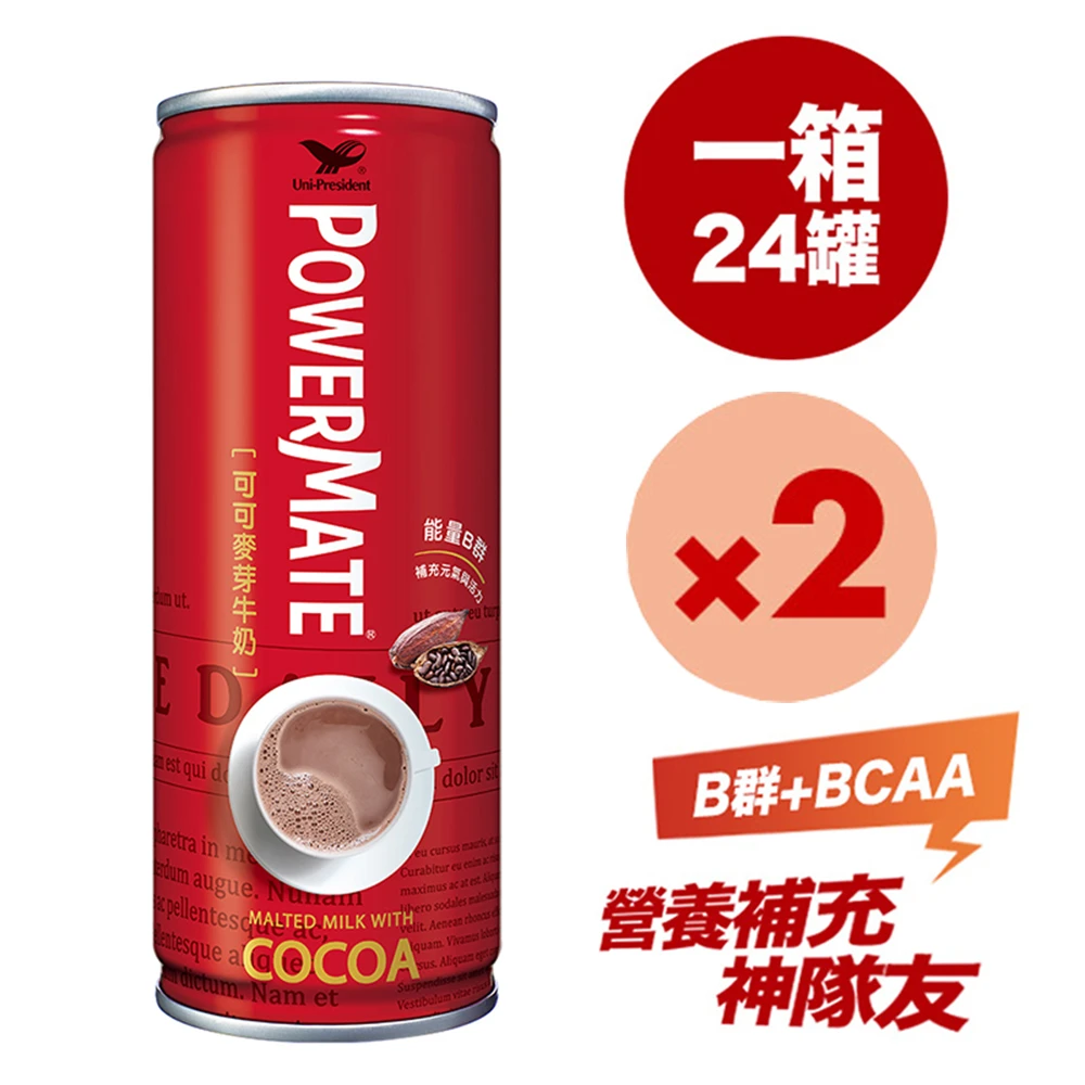 統一 PowerMate可可麥芽牛奶250MLX2箱(共48入;添加B群)