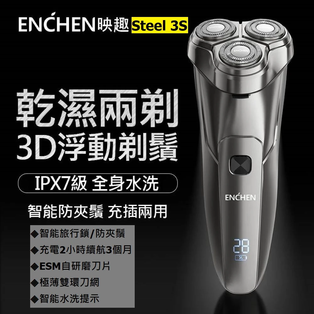 小米有品 Enchen 映趣 Steel 3S 多功能智能USB充電式乾溼兩剃3D浮動全自動全機防水刮鬍刀