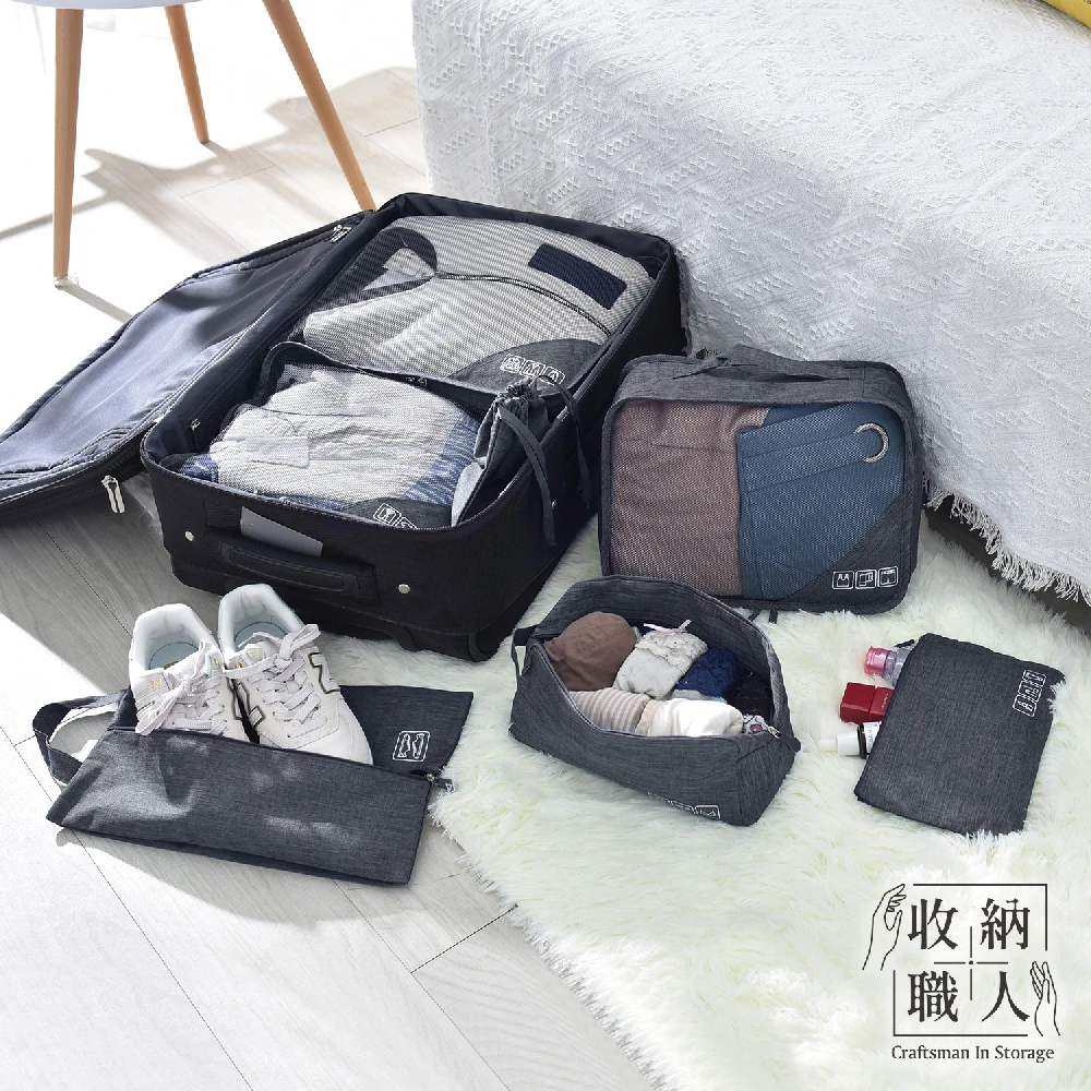 收納職人 多功能牛津布網格大容量旅行收納包/運動健身收納袋7件組_2色任選(收納袋 收納包 收納用品)