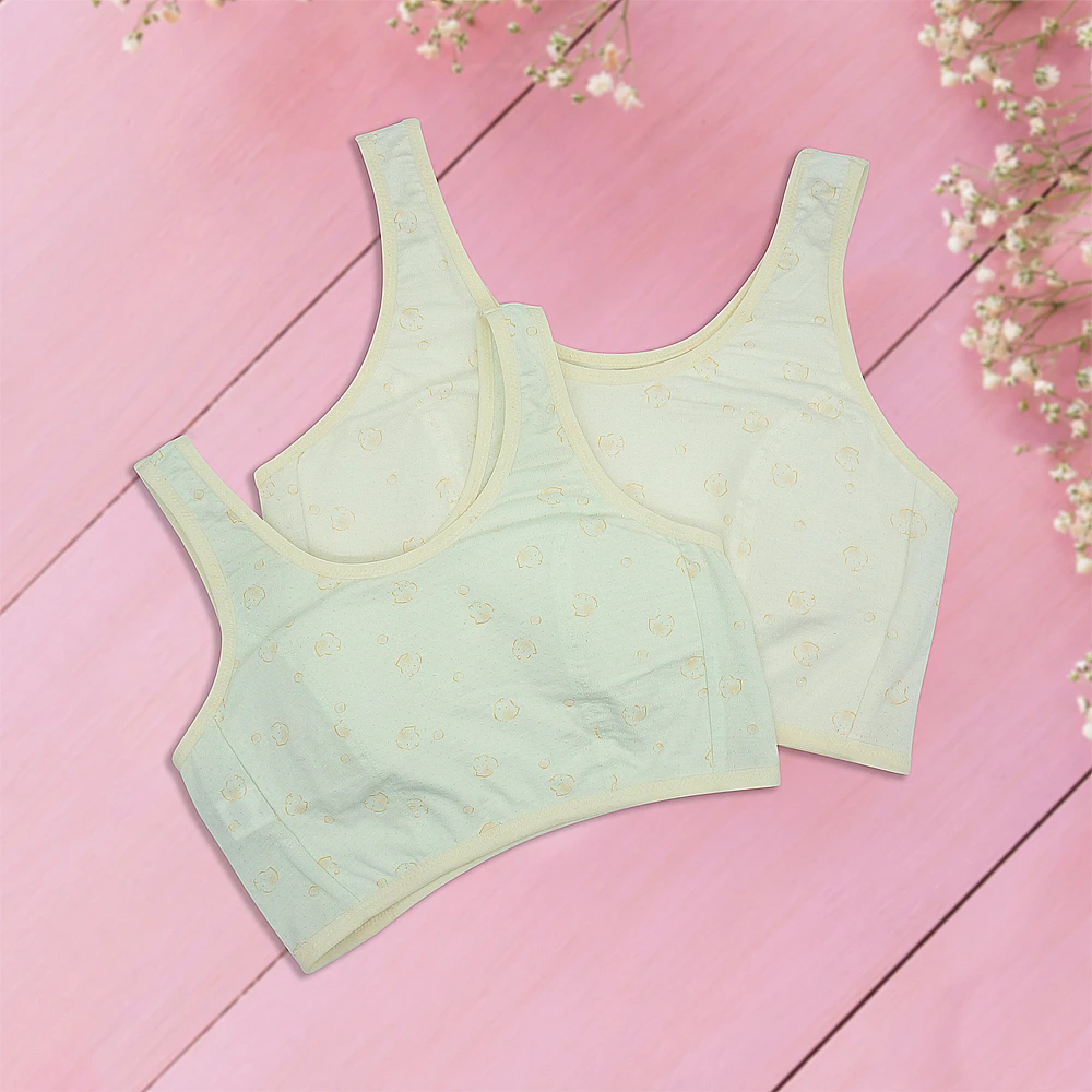 annypepe 成長內衣二階 短版背心型 奧地利天絲 QQ 可愛小雞-米白-水綠140-165(成長型內衣 少女內衣)
