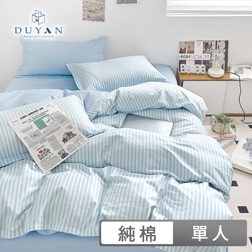 DUYAN 竹漾 純棉 格紋 二件式枕套床包組 多款任選(單人)