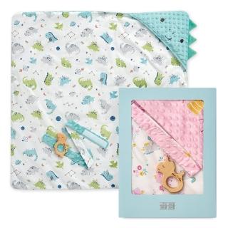 奇哥官方旗艦 豆趣包巾+手搖鈴禮盒(寶寶新生兒禮 滿月禮 彌月禮 嬰兒禮盒 豆豆蓋毯 寶寶毯 嬰兒毯)