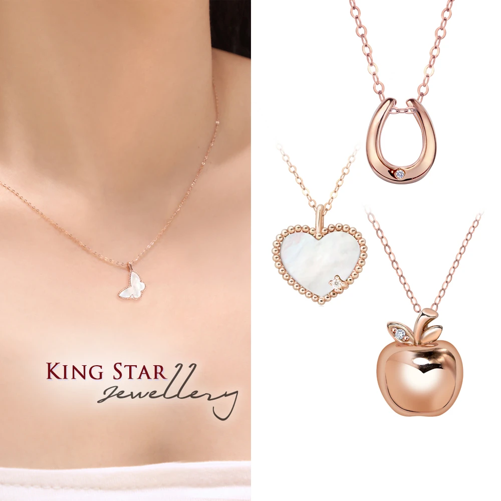 預購 King Star 18K玫瑰金 天然鑽石項鍊-多款任選(贈925銀鍊)