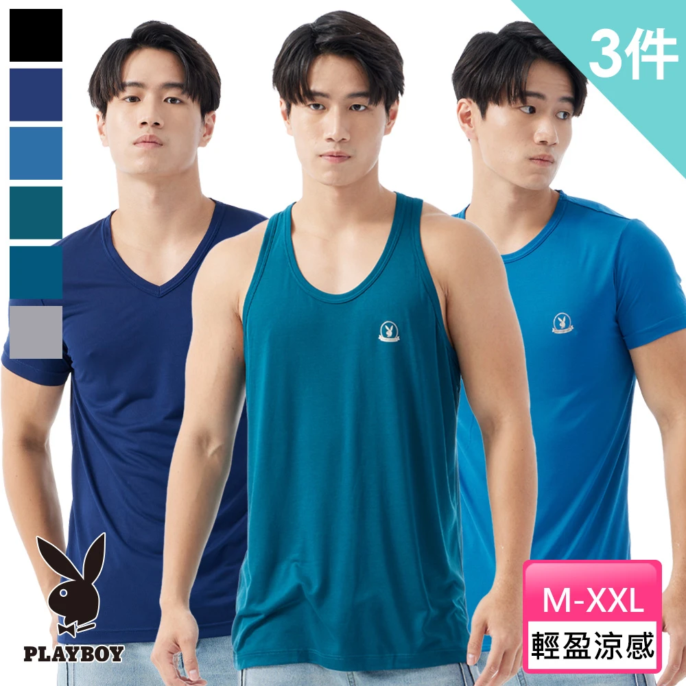 PLAYBOY 3件組莫代爾零著感男背心上衣(運動 健身 慢跑/日本窩流枋莫代爾)