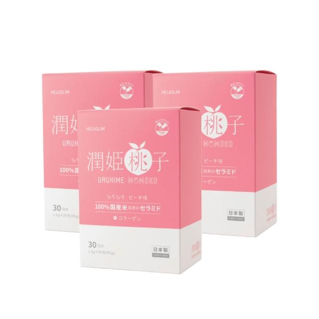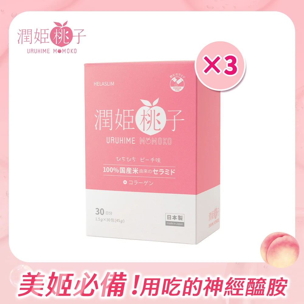 【URUHIMEMOMOKO 潤姬桃子】官方直營 潤姬桃子30入x3盒(維他命B 神經醯胺 膠原蛋白肽 水蜜桃 養顏美容)