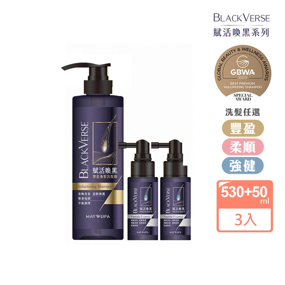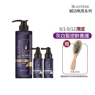 美吾髮 BlackVerse賦活喚黑 洗髮養髮30日組(洗髮精530ml+養髮液50mlx2_涼感)(灰白髮/喚黑養護/何首烏)
