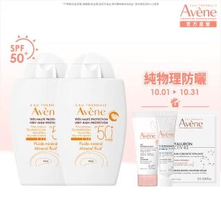 Avene 雅漾官方直營 物理防曬液SPF50 40ml 2入組(特殊美容後/敏感肌推薦)