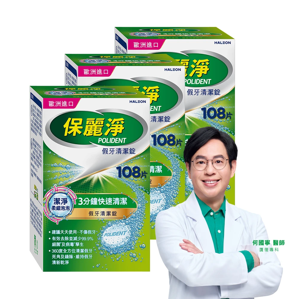 預購 Polident 保麗淨 假牙清潔錠3入 99.9%殺菌力* 假牙乾淨又清新(108錠/入- 金馬影后陳淑芳推薦)