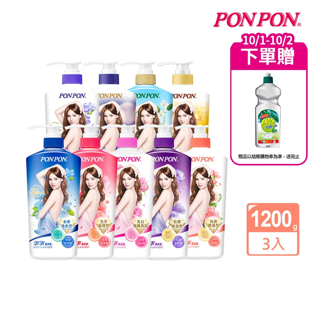 PON PON 澎澎 香浴乳-1200gx3(清爽/滋潤/保濕/美白/煥膚/緊緻/彈潤/鎖水/修護 任選)