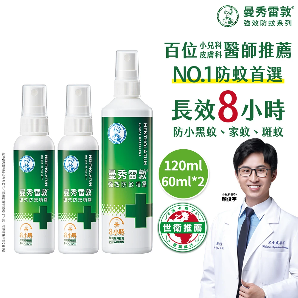 曼秀雷敦 派卡瑞丁強效防蚊噴霧 60ml 2入+120 ml 1入(世衛推薦 防蚊神器 小黑蚊)