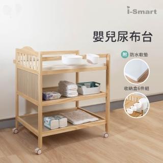 i-Smart 皇家嬰兒實木尿布台+收納盒六件組(超值2件組|附防水軟墊|寶寶護理台|置物架|收納架)