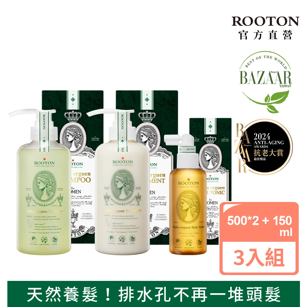 ROOTON 官方直營 甦活植萃完善修護組-洗髮精500ml+護髮素500ml+養髮液髮根噴霧150ml(產婦友善)