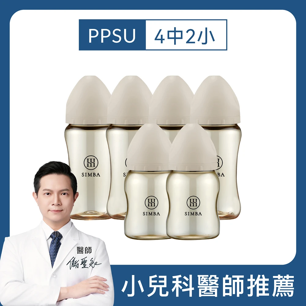 Simba 小獅王辛巴官方直營 新生適用-蘊蜜鉑金PPSU寬口防脹氣奶瓶(4中2小)