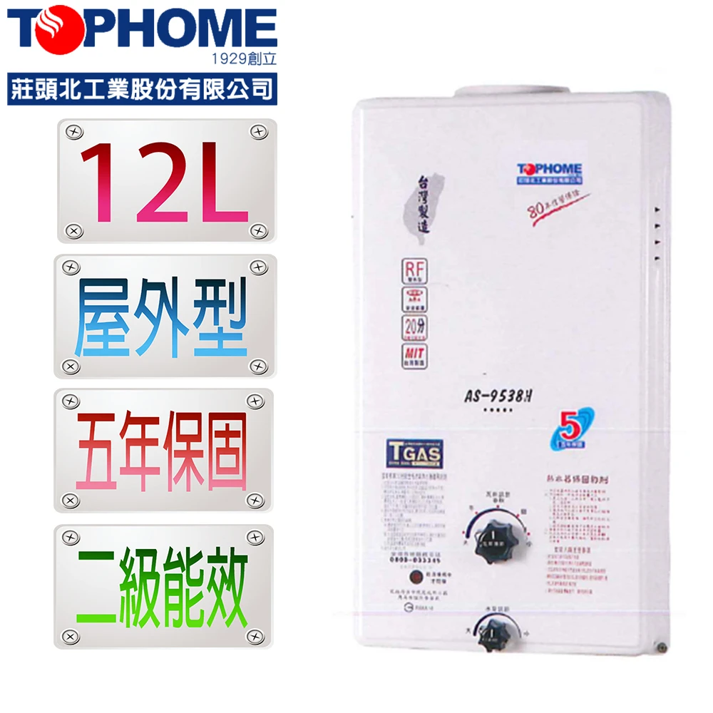 TOPHOME 莊頭北工業 屋外型12L熱水器 AS-9538H(NG1)(含運_不含安裝_12公升_機械恆溫)