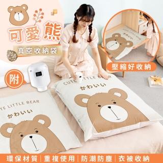 太力 送電泵-可愛熊立體真空收納袋(壓縮袋x5+抽氣電泵x1)
