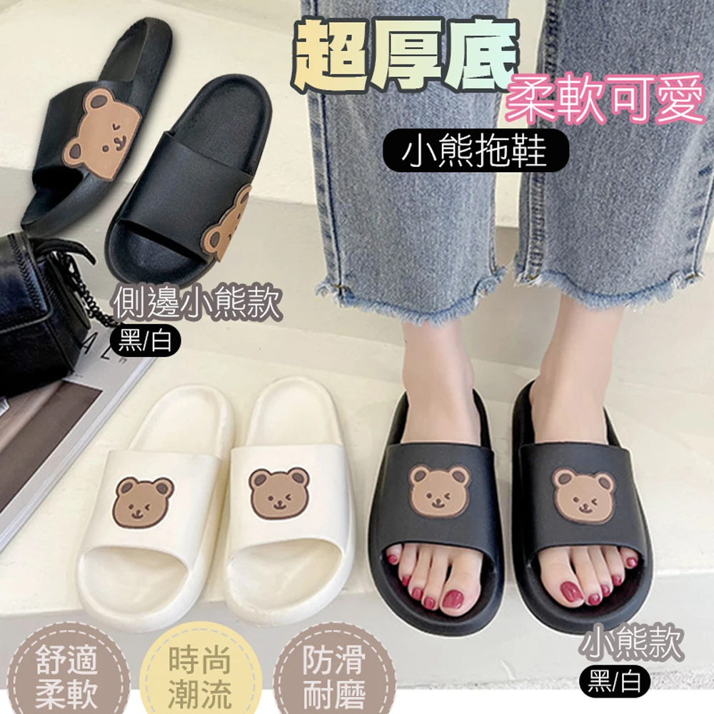 德利生活 可愛小熊超厚底防滑彈力拖鞋(厚底拖鞋 浴室拖鞋 家居拖鞋 防滑拖鞋 防滑浴室拖鞋 軟底拖鞋)