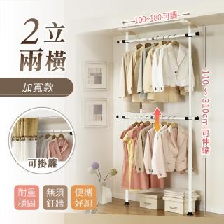 慢慢家居 可掛簾免打孔-頂天立地掛衣架(兩立兩橫加寬 衣帽架 吊衣架 衣櫥 衣櫃 頂天立地架 置物架)