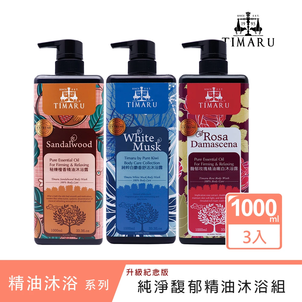 Timaru 堤瑪露 純淨精油香氛沐浴組1000mlx3(升級版-玫瑰/檀香/白麝香-任選)