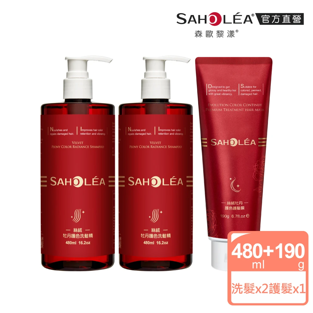 SAHOLEA 森歐黎漾 絲絨牡丹 護色洗護三入組(洗髮精480mlx2+護髮膜190g)