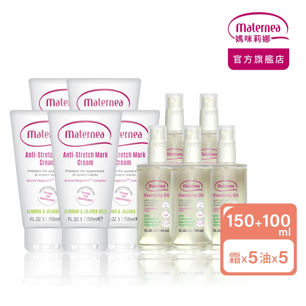 媽咪莉娜 無痕美體霜150ml x5+彈力潤膚油100ml x5(妊娠霜/妊娠油/身體油)