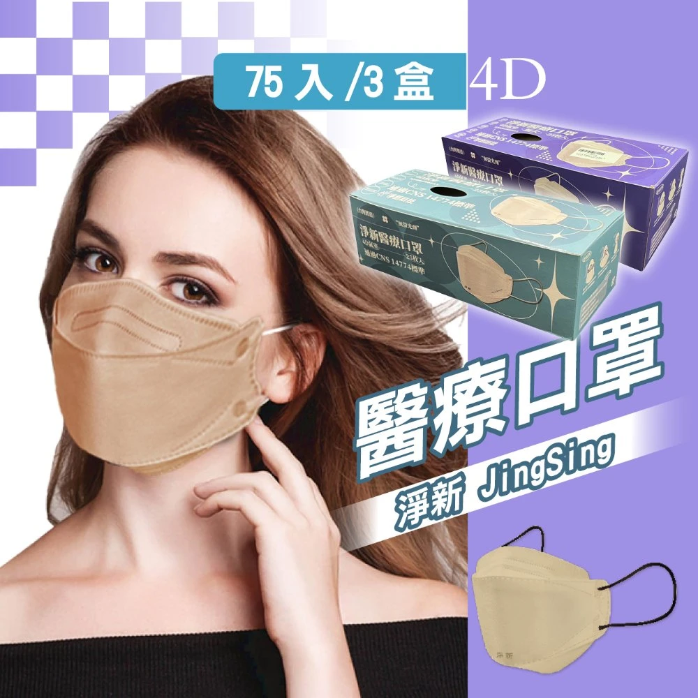 淨新 4D成人立體口罩3盒組(75入/三盒/醫療級/國家隊 防飛沫/灰塵)