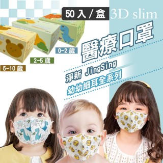 淨新 3D醫療級細耳口罩(50入/一盒/3D幼幼/超幼/兒童立體細耳口罩 防護醫療級/防飛沫/灰塵)