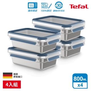 Tefal 特福 無縫膠圈可微波不鏽鋼保鮮盒/便當盒_800ML(4入組)