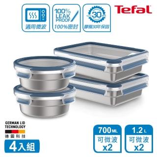 Tefal 特福 無縫膠圈可微波不鏽鋼保鮮盒/便當盒4件組(圓形700ML*2+1.2L*2)