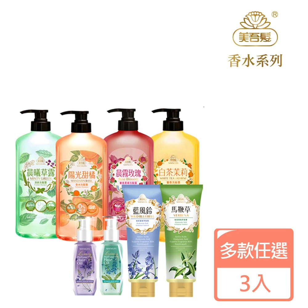 美吾髮 香水系列 玻尿酸植萃洗護養3件組(洗髮精700ml+髮膜190g+髮油100ml)