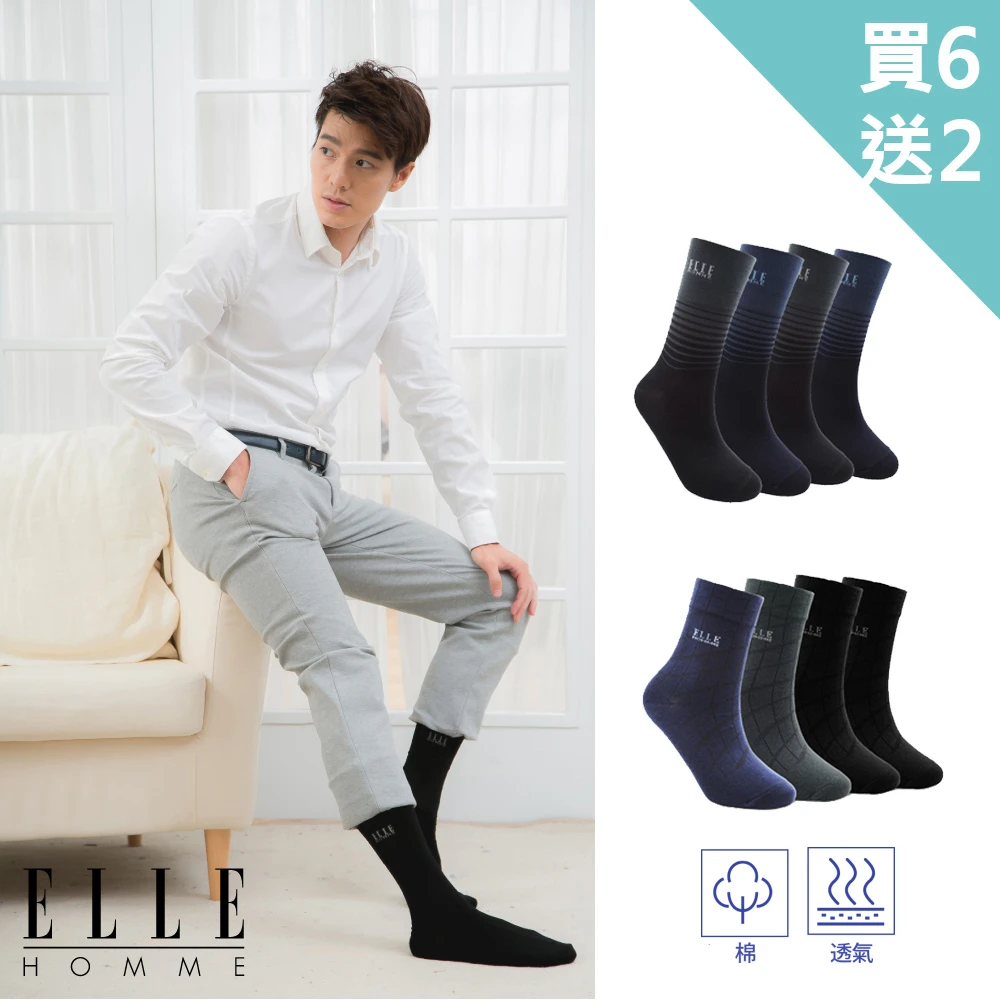 ELLE HOMME 買6送2momo獨家特談尊爵寬口紳仕休閒襪(寬口襪/休閒襪/男襪/紳仕襪/長襪)