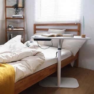 aka 多功能移動式升降邊桌-長方形 80x40cm(傾斜設計/USB孔隨充/床邊桌/懶人桌/沙發邊桌)