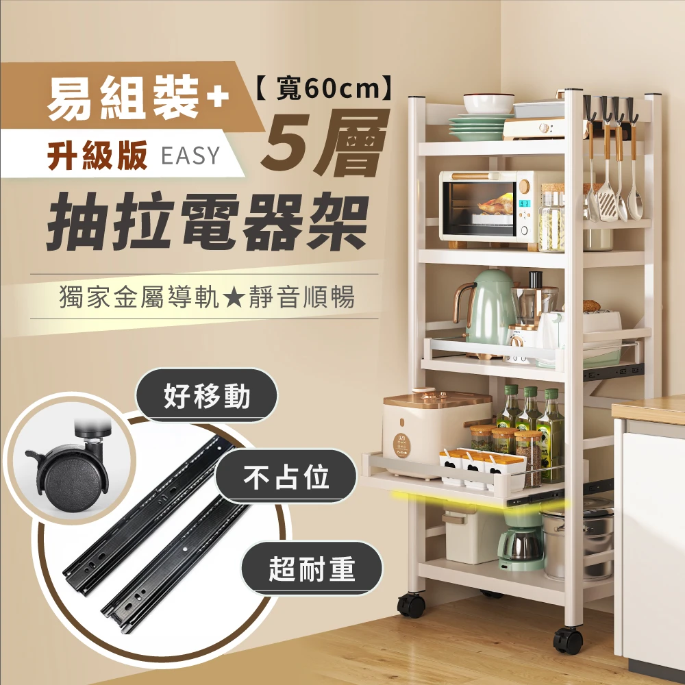慢慢家居 五層60寬-廚房可移動置物電器架(鐵架/收納/櫃子/電器櫃/層架)