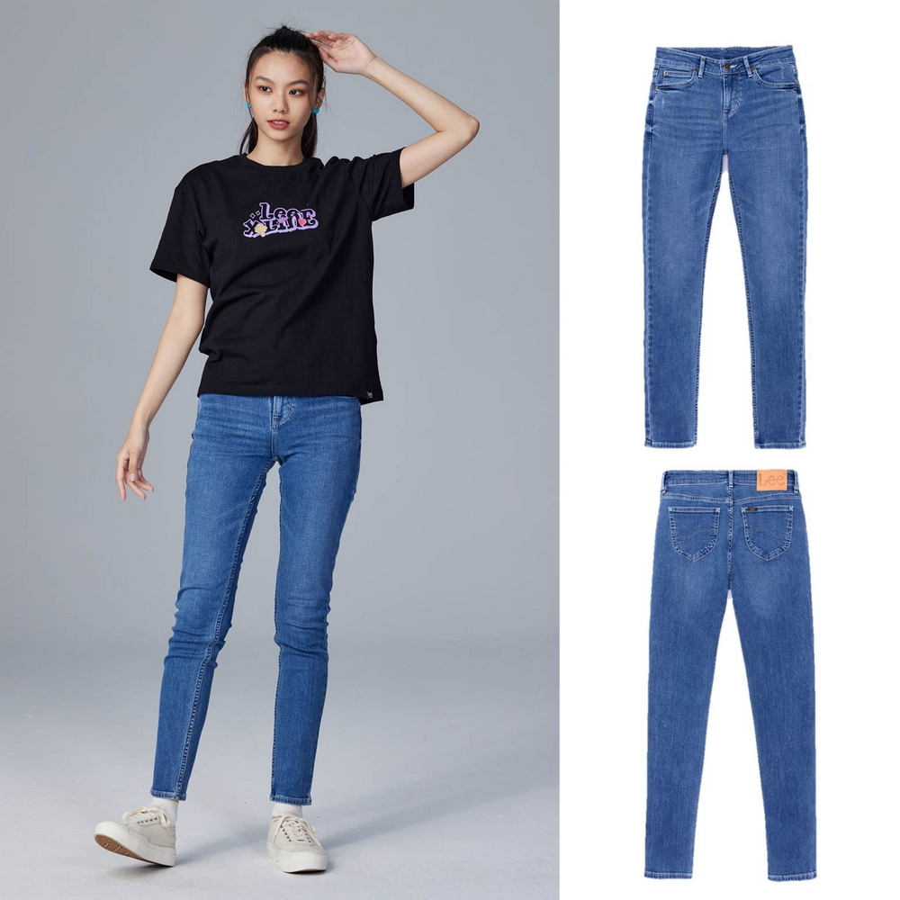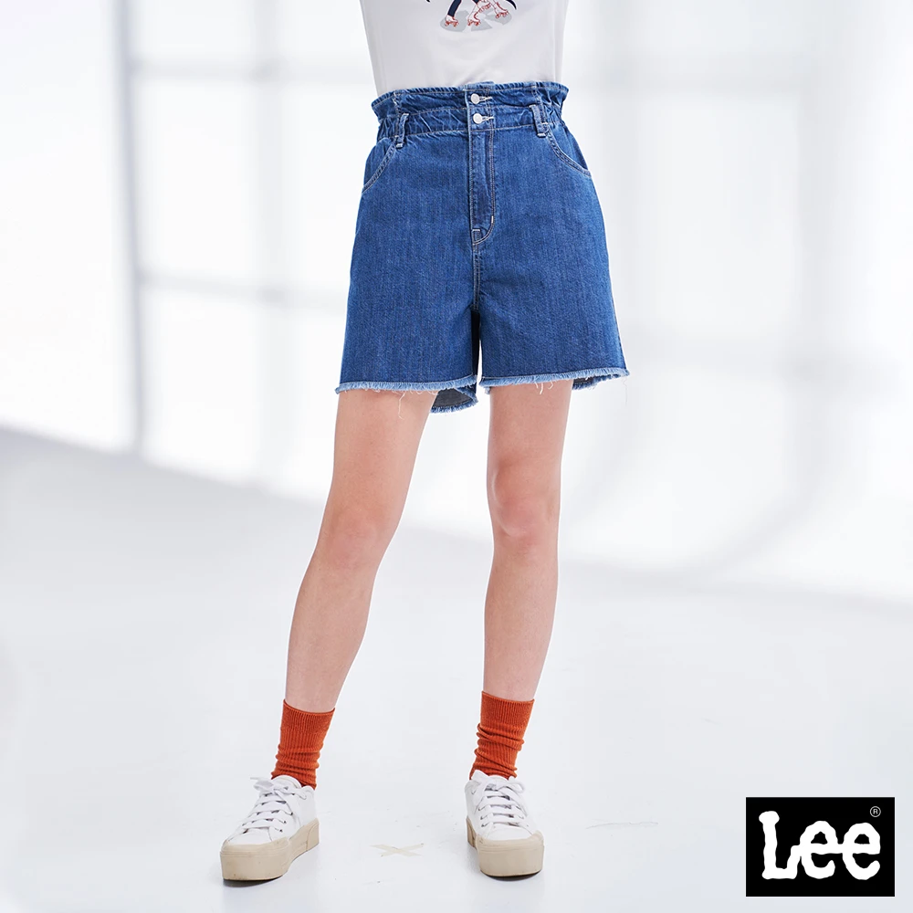 Lee 官方旗艦 女裝 牛仔短褲 / 荷葉高腰 鬆緊腰帶 中藍洗水(LL21011842F)